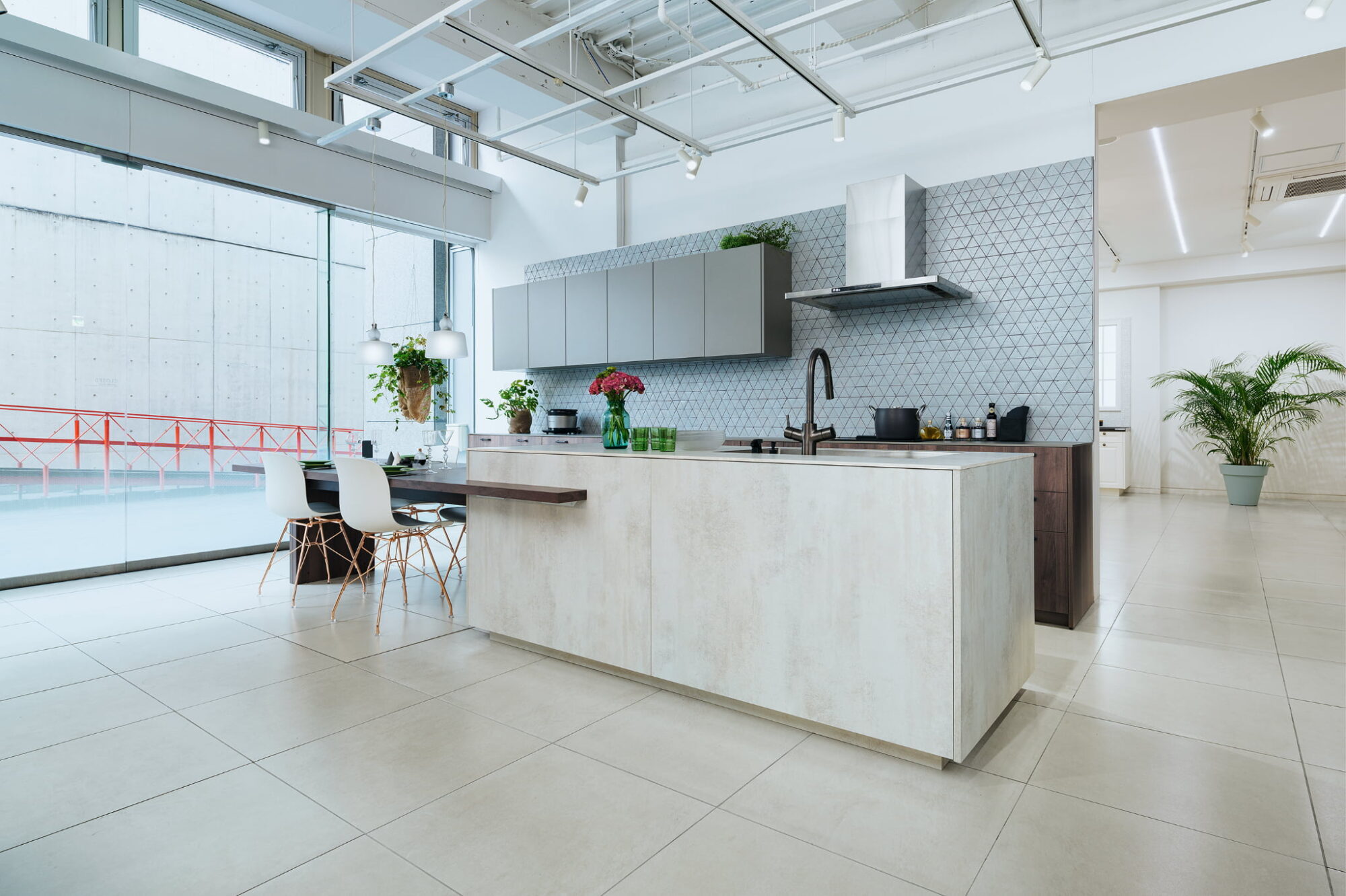 高品質なオーダーキッチンで知られる「キッチンハウス」の各ショールームにて、弊社のタイルを多数ご採用頂いております。