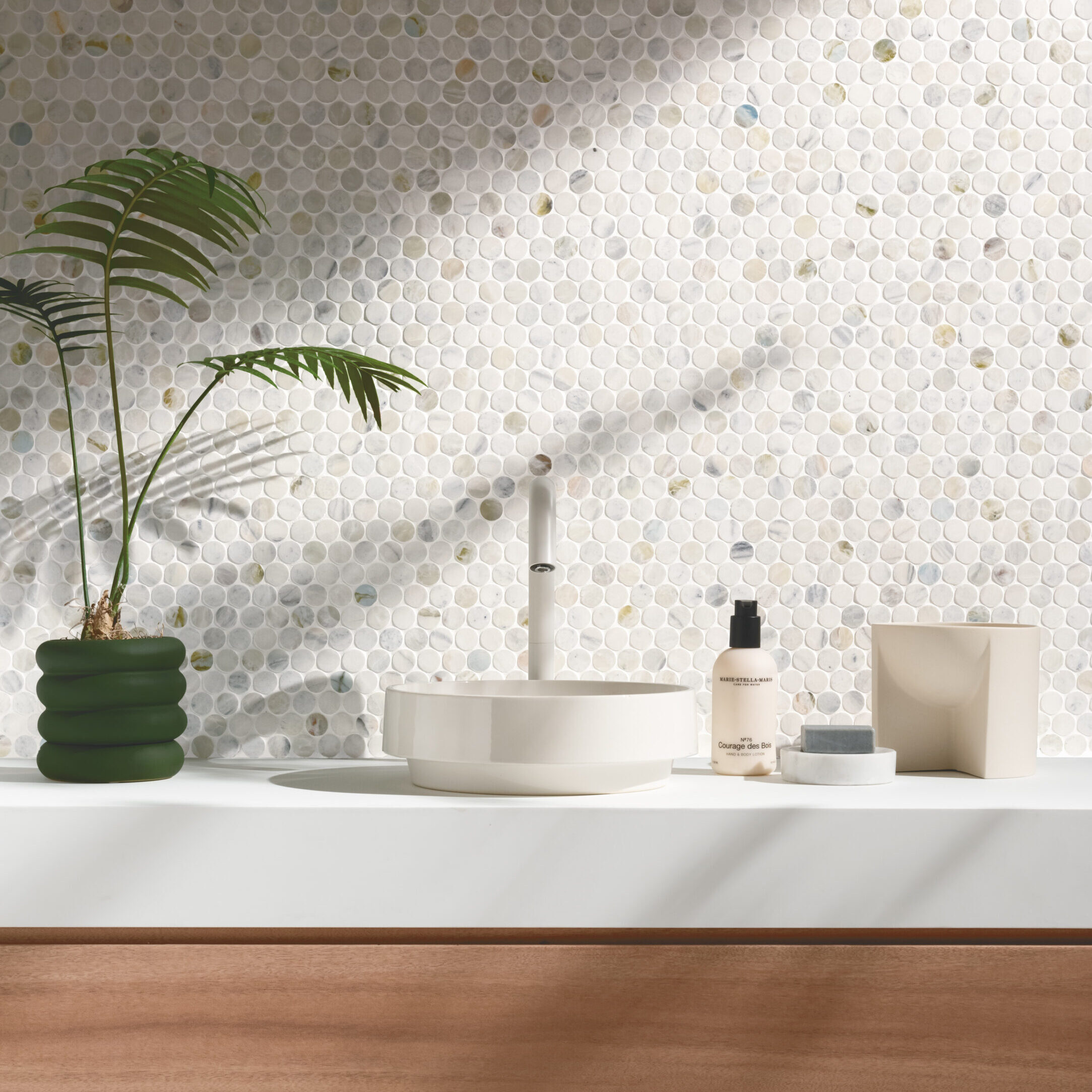 トレンドの高台デザイン「ハイペデスタルデザイン」のブイは、まるでカウンターに浮かぶ浮き輪のようなユニークなデザイン。コンパクトな280mmサイズは、トイレやサブの手洗い、店舗など、どんな空間にも取り入れやすいボウルです。黒曜石、真珠、ホワイトソースをイメージしたニュートラルカラーとユニークなフォルムは、水まわりをセンスよく彩り、空間に一層の格調を与えます。