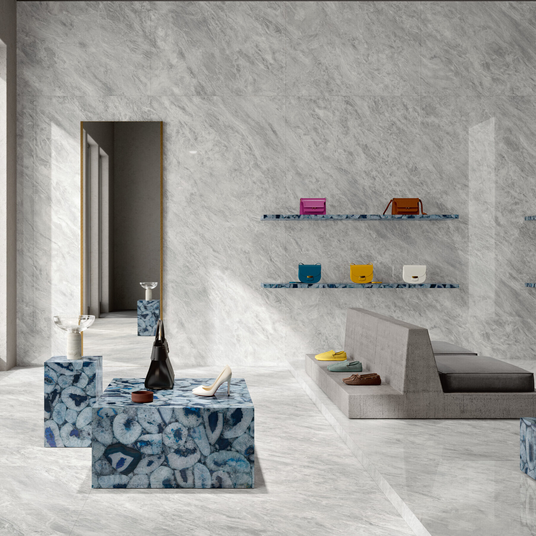 このモネリスは多層プリント技術を使用することで、奥行きのある、まるで本物の自然石のような見た目が再現されております。また1石種ごとに最大4つの模様パターンがあり、大理石の本場ヨーロッパならではの感性が存分に発揮された色やパターンは、高級感が漂う仕上がりとなっております。大判タイルの中でもトップクラスのサイズを活かして、目地の少ないダイナミックな意匠が可能です。また厚み6㎜を実現させたことにより、軽量化にも成功しました。大判で軽量という特徴を活かし、圧倒的な存在感で空間を演出することができます。