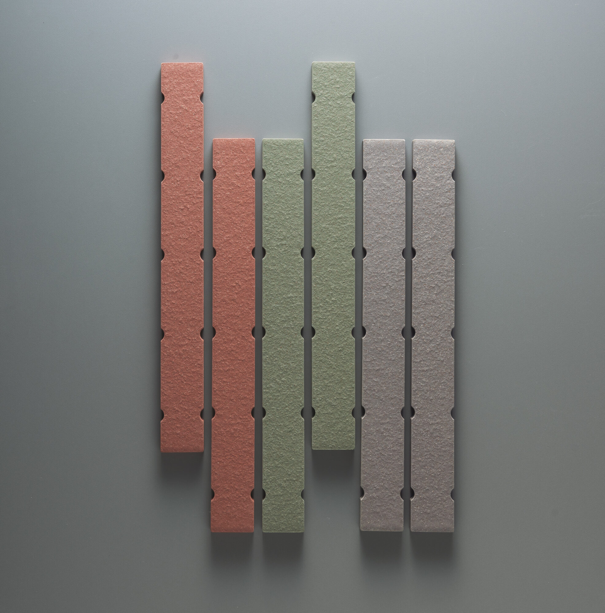 フランス生まれの気鋭アーティスト、ロナン・ブルレックの美しいラインやフォルムへのこだわりをタイルで表現。すっきりとした低彩度マットの質感と、骨やボタンから着想を得たユニークな形状は、目地を入れたときに空間の創造性を大きく広げます。