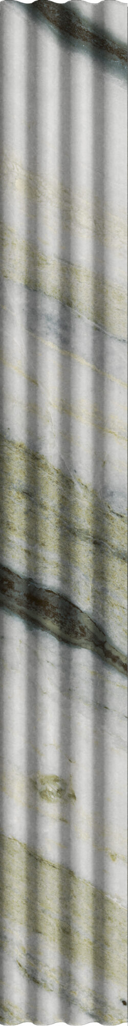 人気の大理石デザインに特徴的なフォルムを組み合わせた「マキシマリスタ」。曲線的な立体形状に大理石のマーブル模 様も相まって、まるでドレープカーテンのようなエレガントな表情をもたらします。壁面にもネオ・クラシックなムード を取り入れて。