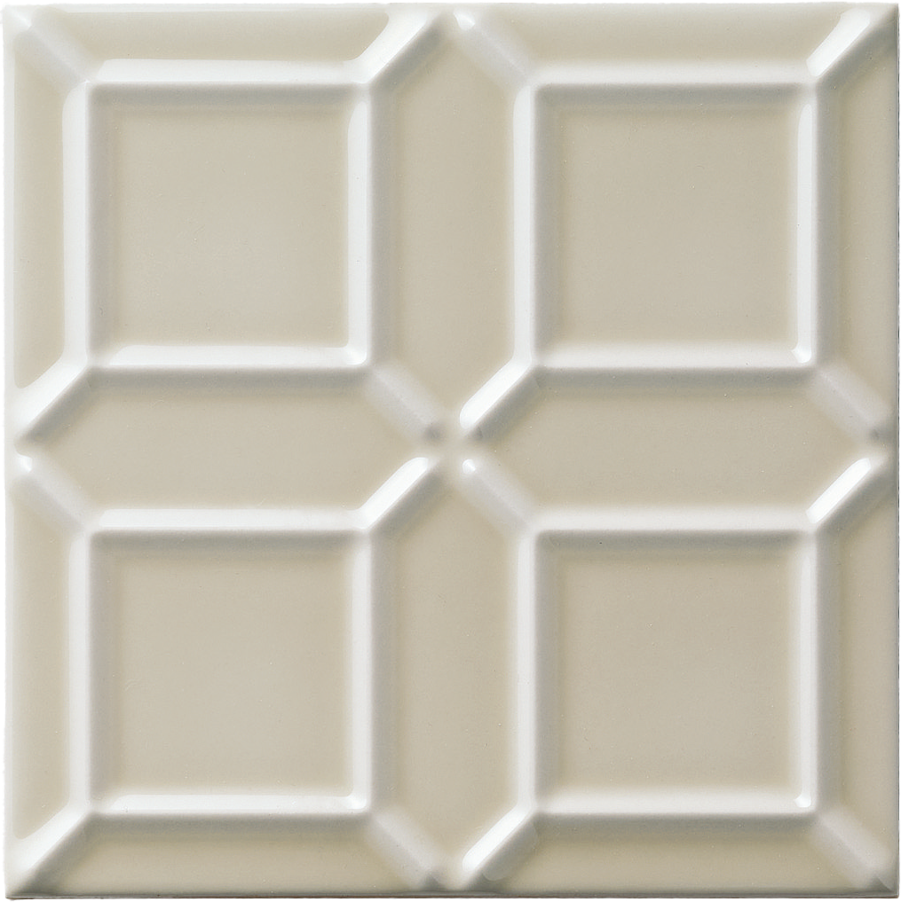 透明感のある釉薬をたっぷりと施すことで、立体的な幾何学レリーフが浮かび上がります。優美 でモダン、そしてどこかクラシカルな雰囲気を漂わせます。
