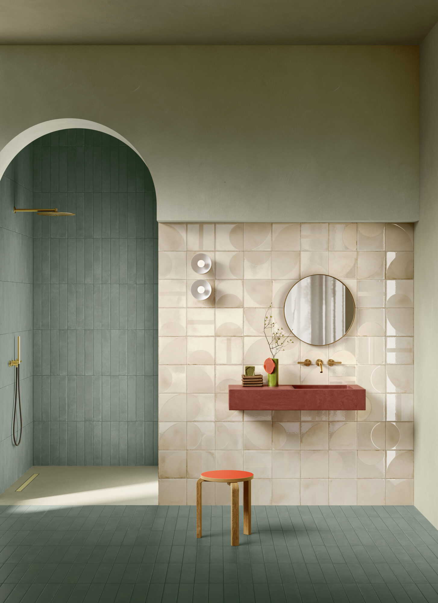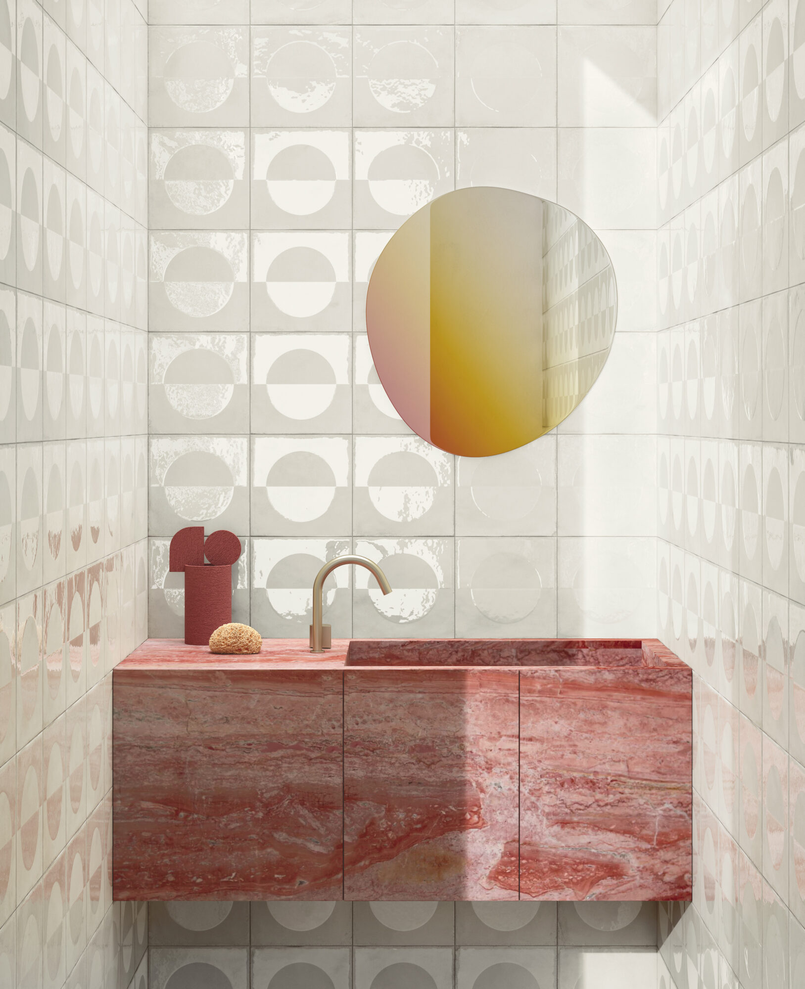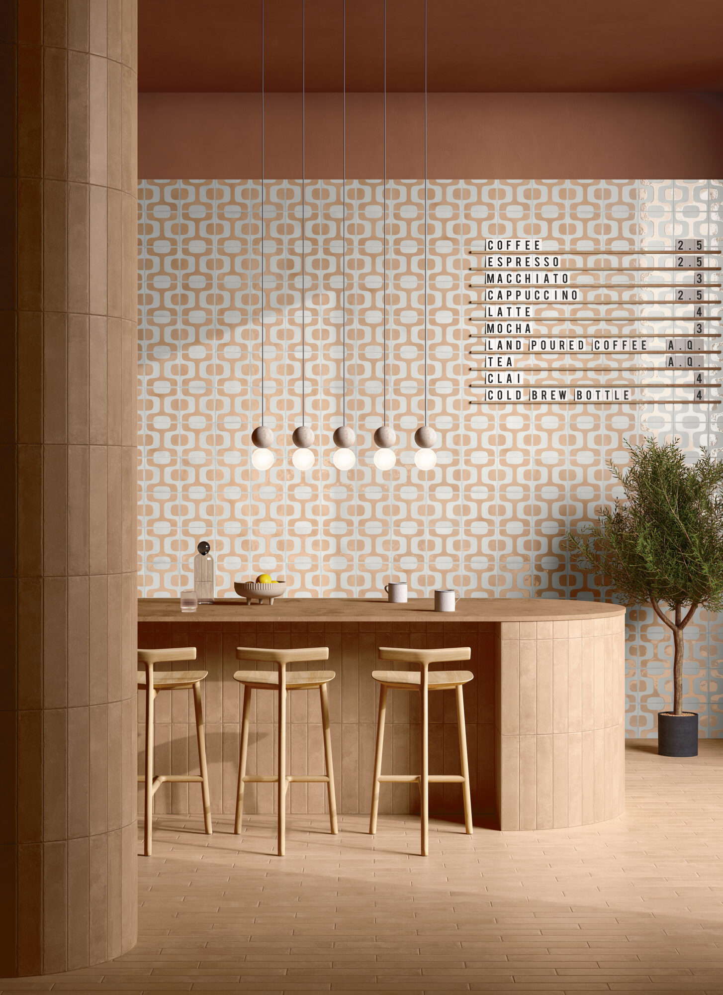 ブライトとマット。2つの質感で幾何学モチーフをデザインした「マヌファッティ」は、今の空間デザインに求められるちょうど良いテイストのアートタイル。 どのパターンも個性的でユニークな魅力を持ち、空間をファッショナブルに包み込みます。