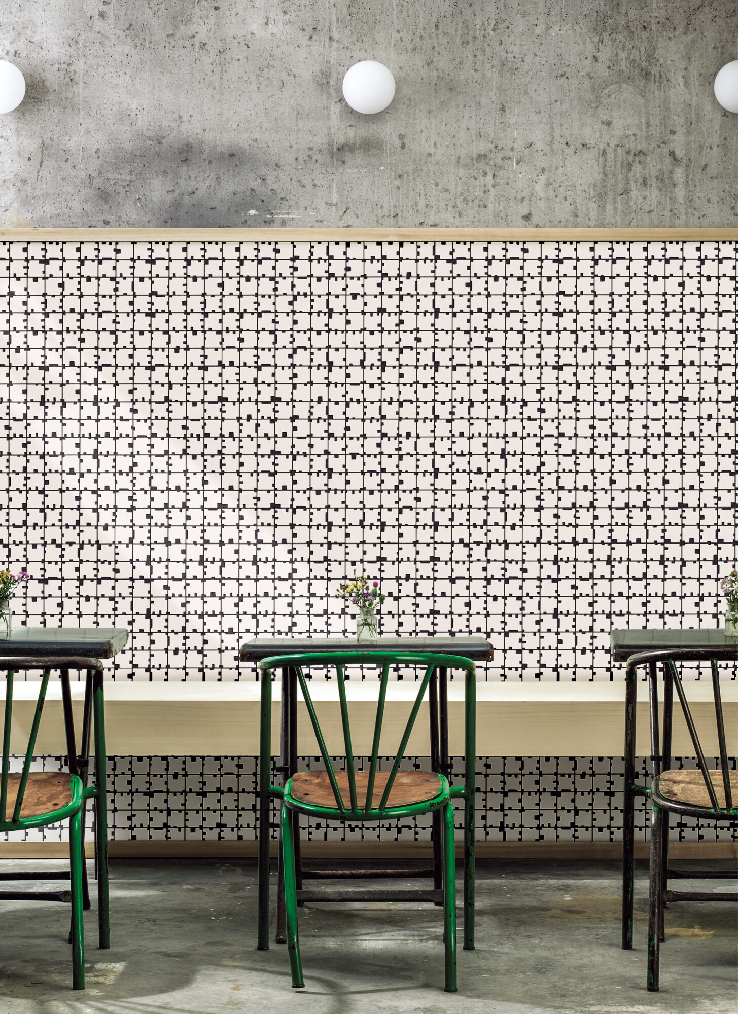 5パターンの動物をモチーフに、面状にあえての“欠け”を取り入れたデザイン。独特の欠けはタイルを並べたときに光と影を生み、空間に個性とアート性をもたらします。 カラー目地との組み合わせでより遊び心たっぷりのコーディネートを。